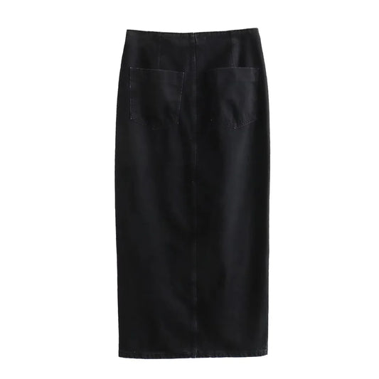 Women’s Button-Front Denim Midi Skirt with Side Slit