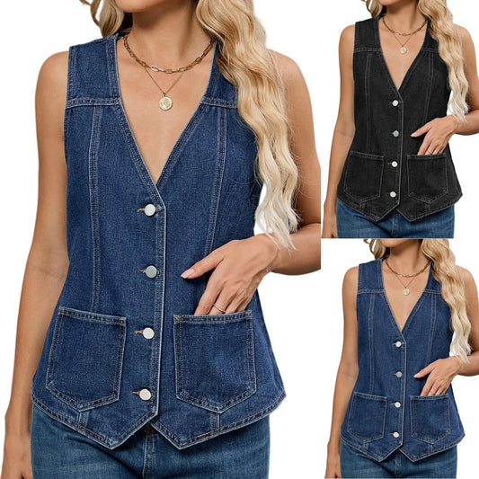 Women’s Denim Vest – Slim-Fit Cropped Sleeveless Top