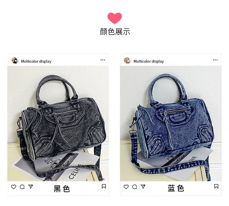 Women’s Denim Shoulder Bag – Large Capacity Crossbody Tote